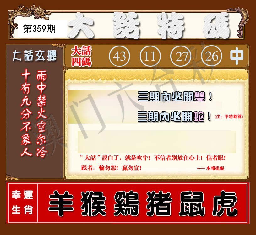 | 357期推荐⑤肖:蛇猪狗兔鸡 |