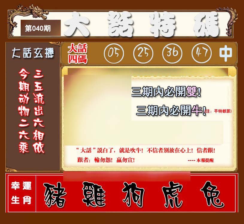 | 040期推荐⑤肖:狗猴羊蛇龙 |